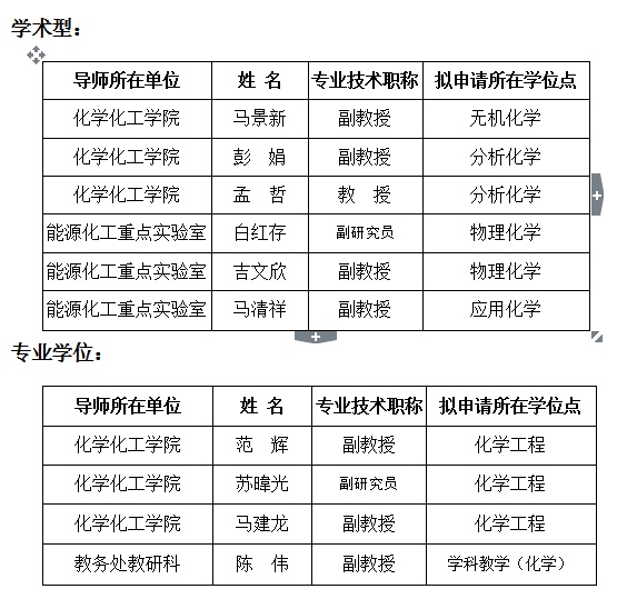 根据《宁夏大学硕士生导师选聘及招生规定(试行)》及《宁夏大学化工学院硕士生导师选聘细则(试行)》的规定,学院于4月20日召开院学位评定分委会,能源化工重点实验室郭庆杰主任、赵天生常务副主任及王政副主任列席参会,经分委会委员不记名投票表决,拟向研究生院推荐马景新等十人为硕士研究生指导教师,现公示如下: