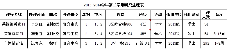 注:1、本学期专业硕士(化学工程专业)不上公共英语课程,不及格同学下学期补考。