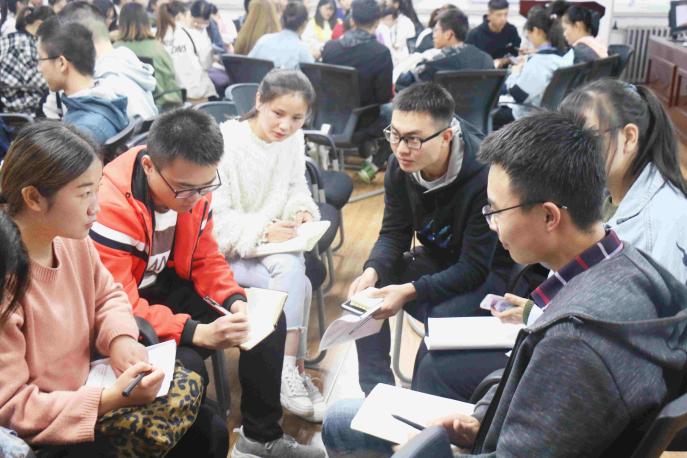 在培训中,王老师以“不忘初心、牢记使命——发挥学生党员先进性,把主题教育落到实处”为主题,从深刻理解共产党人的初心和使命的内涵、共产党人为什么要“不忘初心、牢记使命”、新时代大学生如何做到“不忘初心、牢记使命”三个方面,对习近平新时代中国特色社会主义思想作了系统的解读与阐述。随后,王老师引导同学们积极思考,以小组为单位进行讨论并让同学们踊跃发言,表达自己对“不忘初心、牢记使命”主题教育的深刻理解。