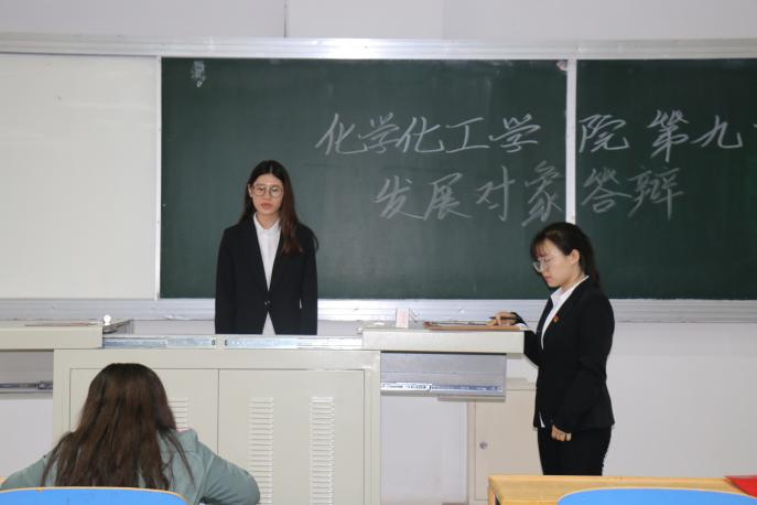 第九期发展对象答辩大会于文萃一教421室和411室顺利开展。分析化学学生党支部书记马丽蓉老师,学生党员王刚、付影影、张聪、马楠、高钰婧担任本次答辩大会评委,本期入党积极分子及部分班级代表共百余人作为观众参与了此次答辩活动。