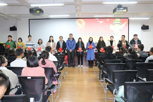 党委副书记桂晓兵、刁俊,学生办公室辅导员马丽蓉、马洁、王凤霞出席此次开班典礼。典礼由马洁老师主持,全体党员、发展对象和入党积极分子参加了本次活动。