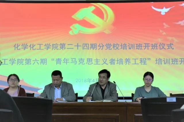 第24期分党校开班典礼在学院115会议室隆重举行!院党委书记马玉龙、院党委副书记桂晓兵、院学生工作办公室主任王艳梅、学院学生工作办公室马丽蓉出席了会议。第24期积极分子全体到场参会。