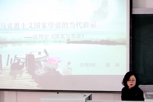 会议在庄严的国歌中拉开序幕。主持人王艳梅老师讲解了本次培训安排及要求。随后,潘瑞副书记作了题为“马克思主义国家学说的当代启示------读列宁的《国家与革命》”的专题讲座。讲座从写作的时代背景、基本原理、当代启示三个方面作了详细讲解,同学们以饱满的热情、积极的心态聆听了讲座。