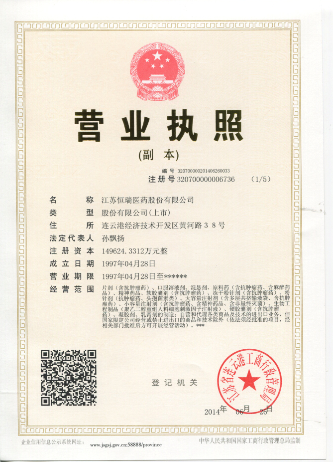 江苏恒瑞医药股份有限公司始建于1970年,2000年在上海证券交易所上市,股票代码600276,是中国最大的抗肿瘤药和手术用药的研究和生产基地,国内最具创新能力的大型制药企业,国内首家医药股A股市值突破1000亿元药企。