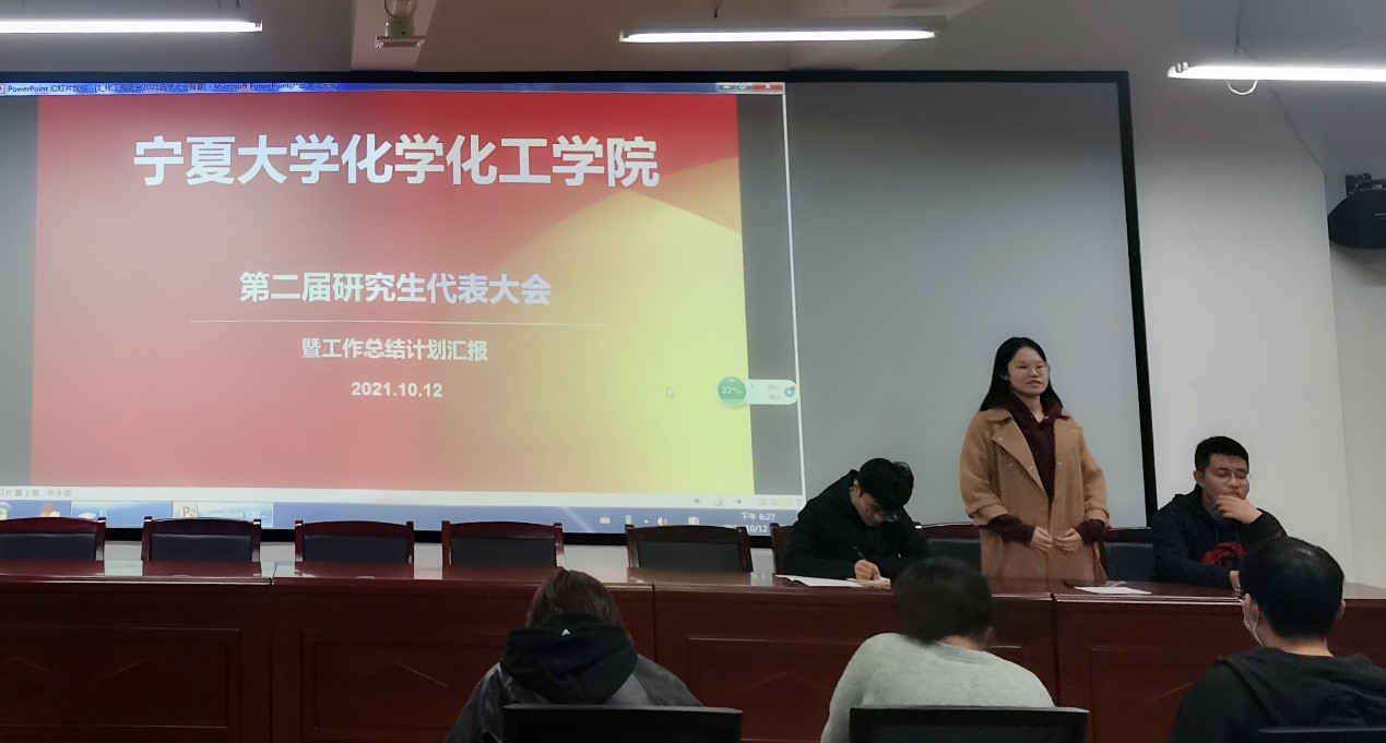 暨省部共建煤炭高效利用与绿色化工国家重点实验室第一届研究生代表大会在知化楼115会议室隆重召开。学院辅导员马洁、院研究生会成员及各专业50位研究生学生代表出席本次会议。