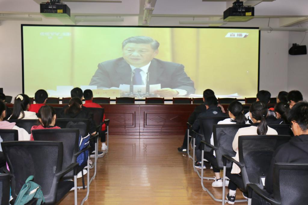 在观看直播的现场,同学们聚精会神,认真聆听学习习近平总书记的重要讲话,怀着对英雄的尊敬和历时的尊重,缅怀先烈,致敬历史。习近平总书记在讲话中说到:抗美援朝战争伟大胜利,是中国人民站起来屹立于世界东方的宣言书,是中华民族走向伟大的重要里程碑,对中国和世界都有着重大而深远的意义。伟大抗美援朝精神跨越时空、历久弥新,必须永续传承、世代发扬。回望70年前伟大的抗美援朝战争,进行具有许多新的历史特点的伟大斗争,瞻望中华民族伟大阜新的光明前景,我们无比坚定、无比自信。