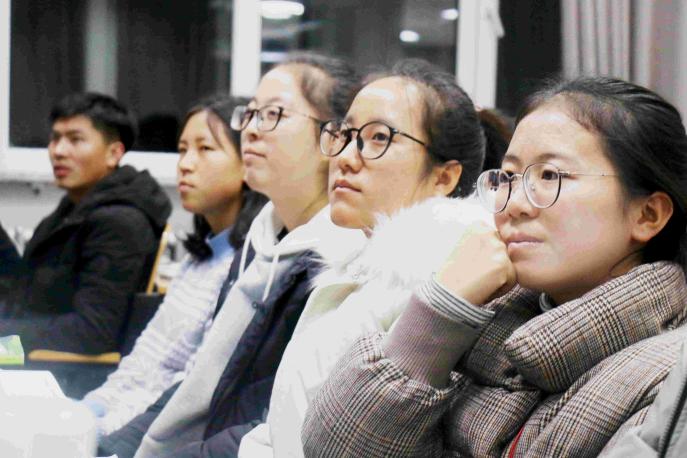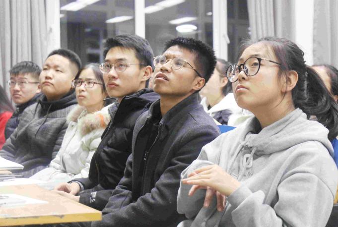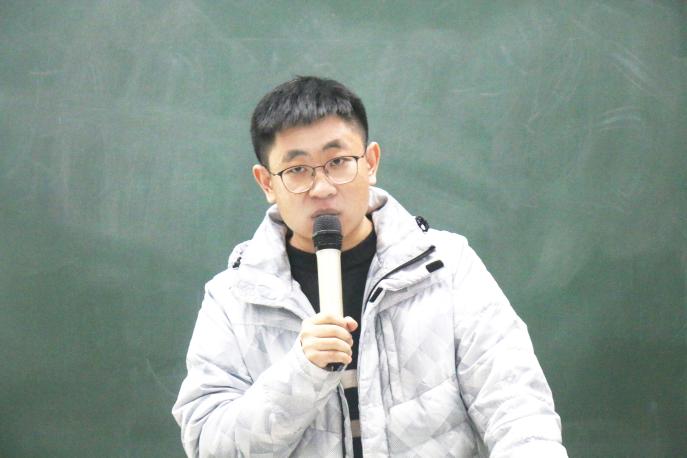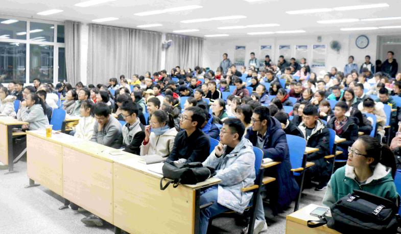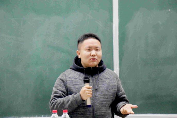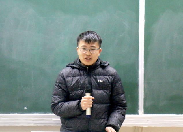 讲座中,薛凯以幽默风趣的语言,用《西游记》师徒四人的故事为喻,引出团队在创新实验中的重要性,他以自身为例,讲述团队队员之间互相磨合的故事经历,并且向大家展示答辩PPT,呼吁同学们要积极把握机会主动参与科研创新实验及各类竞赛。