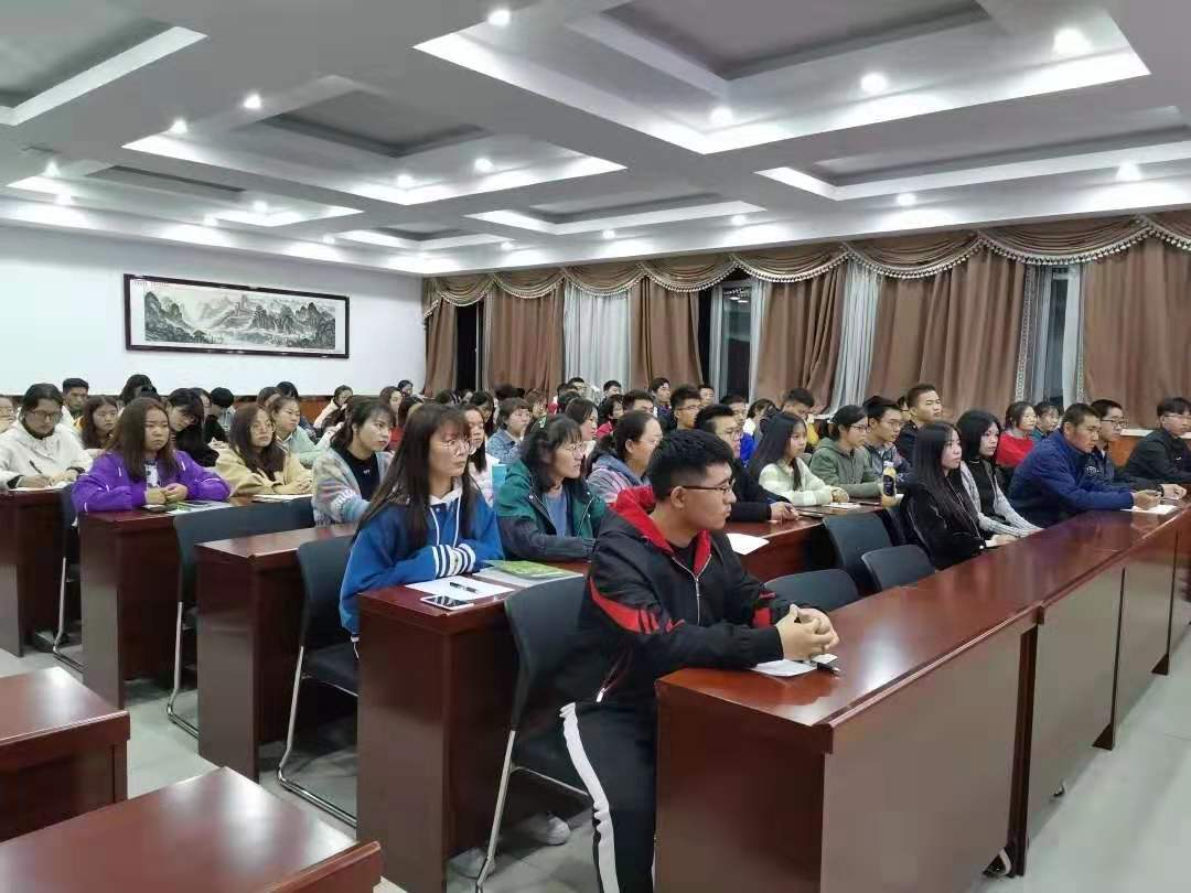 知化楼115报告厅中,赵维素老师娓娓道来,向全体党员讲述了老一辈革命领导人的革命事迹,化抽象为具体,用通俗易懂的语言向党员们重点讲述了红军四渡赤水、巧渡金沙江、八一南昌起义等重大历史事件。重点强调广大党员干部应自觉践行党的宗旨,以人民群众的切身利益为自己奋斗的目标。呼吁广大党员同志切实学习贯彻习近平新时代中国特色社会主义思想,为实现中国“两个一百年”奋斗目标贡献自己的光和热。
