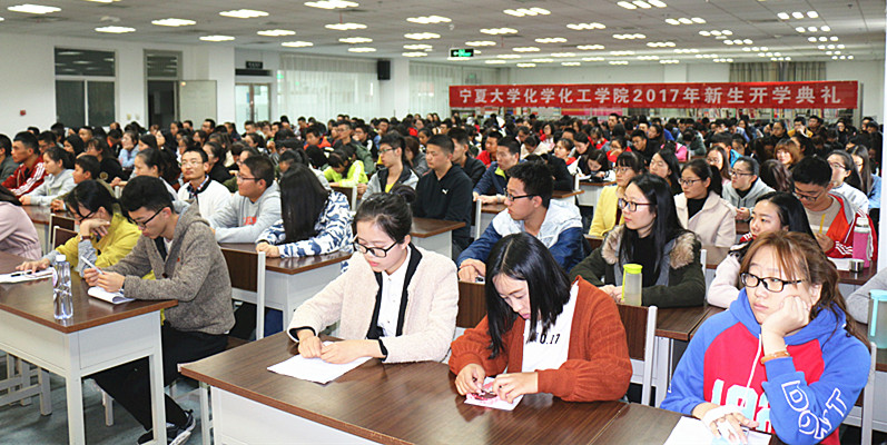 在嘹亮的国歌声中,2017级新生开学典礼拉开帷幕。首先,倪院长代表学院向新生们致欢迎辞,并介绍了香港六合彩资料概况 、学科建设、教学设施和专业特色。他向新生提出“自信、宽广、付出”三个关键词,希望同学们在求学之路上建立自信,心怀宽广,努力付出,祝愿大家在学业和人生的道路上大丰收。之后,国家重点实验室常务副主任赵天生向新生们介绍了国家重点实验室的建设情况,并希望新生能与宁夏大学的发展同呼吸、共命运。教师代表詹海鹃博士发言,号召全体新生积极进取,有效规划自己的大学生涯。2017级新生代表周颖,表达了自己对今后大学生活的憧憬与向往,并号召大家为了宁大梦和中国梦奋发努力。