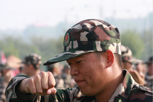 烈日下,艰苦训练,咬牙,闭眼,任豆大的汗水滴撒在操场之上,也不言放弃。
