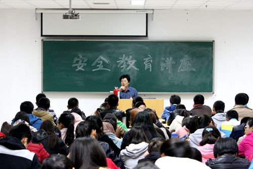贾科长就遵纪守法,治安防范,消防安全三个内容讲解了校园安全的重要性,通过丰富的案例,同学们了解到赌博、毒品及非法传销的危害,认识到校外租房,盲目从事家教工作、饮酒等活动存在的安全隐患,明确了要遵守校纪校规,以确保人身安全。