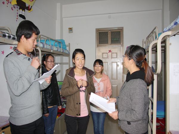本次宿舍风采大赛由院团委、学生会牵头,由学生会生活部主办,2011、2012、2013全体学生宿舍参赛。王彦庚副书记,兼职辅导员冯尚彪、潘亚男带领团委与学生会干部对12#学生公寓进行评比检查,新生辅导员王艳梅老师、2010级辅导员曹洋老师带队对15#学生公寓楼进行了评比检查。评比主要针对宿舍卫生状况、文化特色、风采展示、才艺展示四方面进行评估打分,各宿舍同学热情高涨,纷纷设计了具有一定内涵的宿舍logo,并制作了演示文稿对宿舍风采、成员进行展示。