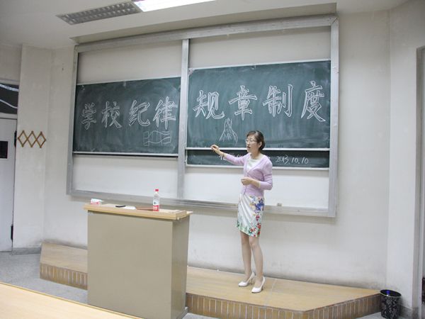 10月10日晚,香港六合彩特码资料在C区1教231教室举行新生入学教育第五讲——学校纪律及各种规章制度、办事程序主题教育讲座,本次讲座由香港六合彩特码资料学工办主任、团委书记、12级辅导员柳松洁老师主讲。