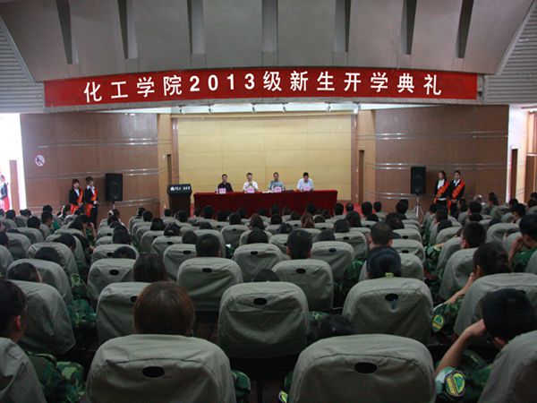 典礼在国歌声中拉开了序幕。李嗣丞书记首先做了迎新致辞,并对化院全体13级学生提出了殷切希望。希望学子一入化工门,便应如化工学院门前的对联所书:“饮流怀源德为至宝用一生,传道授业心做良田耕百世”,成为化院师生德艺双馨的写照。会上,化学系主任张晓光老师、2010级化学师范专业潘亚男、2013级化混(2班)陈佳聪分别作为代表教师、老生和新生做了交流发言。最后,王彦庚副书记总结讲话,同时对新同学提出了三点希望:一是要志存高远,脚踏实地;二是要刻苦学习,勇于实践;三是要培养品格,勇于创新。