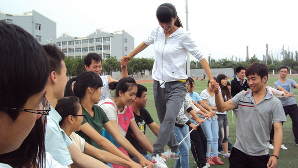周末早上的朝阳与足球场交映处无限生机。在宁夏大学大学生“展梦”素质拓展户外训练团体首席教练董阳、助理教练马海峰的带领下,参训的全体学生党员进行了“破冰之旅、教官说、换绳接力、管理拓展、我们在一起、为你祝福……”等十余项素质拓展训练项目。精心设置的各项户外活动以实践经历和切身感受的方式,充分培养了学生交流沟通能力;锻炼了学生思维活跃度、激发潜能;提高了学生自我管理、团队合作、讲究效率的本领;教会了学生表达真善美、体验友谊和团结的力量。