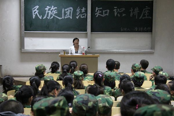 首先,潘瑞副书记讲述了有关民族共同体问题及我国民族分布的问题,她说:“有民族,就有问题,不同的摩擦总与民族有关,几乎地球上的每个角落都有民族问题引发的战争。”潘书记用生动翔实的例子,列举了民族矛盾所引发的重大问题,让新生对民族团结有了确切真实地认知。宁夏是回族聚居的地方,从而在宁夏大学这个多民族存在的地方,民族团结就成了讲座的主体。因此潘瑞副书记讲述了宁夏大学的民族分布状态及有关民族习俗的知识,她强调:各民族同学之间要互相尊重,互相团结,互相帮助,尤其是宗教信仰问题,要相互谅解,尊重。