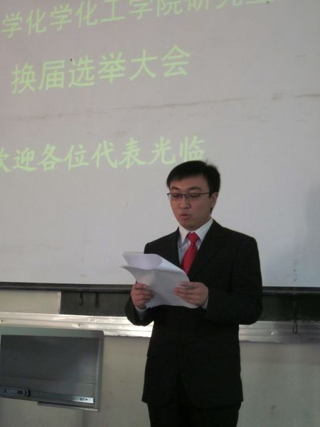 大会首先审议并通过了上届研究生会主席曹华鹏同学的工作报告,随后选举产生了新一届研究生分会委员。最后,潘瑞副书记作了热情洋溢的讲话,她充分肯定了上届研究生分会取得的成绩,并对新一届研究生分会成员和全体研究生提出了希望,希望研究生分会要以党的思想为指引,以党的方针为导向,围绕学院和学校的中心工作开展各项活动,做出特色、做出品牌。希望研究生加强与本科生之间的交流,为本科生提供更好的帮助;加强与企业的交流和合作,在更广阔的舞台上锻炼自己。希望研分会始终秉承“自我教育、自我管理、自我服务”的理念,想研究生之所想,急研究生之所急,尽其所能解决研究生之所需,为研究生营造出良好的学习环境和浓郁的学术氛围。