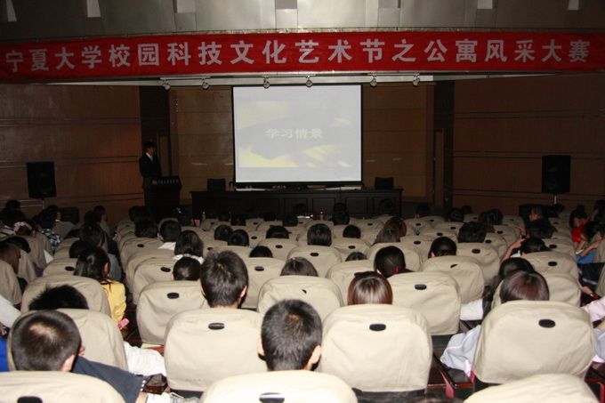 团委承办的宁夏大学校园科技文化艺术节之公寓风采大赛,在宁夏大学B区报告厅隆重举行。校党委宣传部副部长武林波,学生处副处长王志霄,共青团宁夏大学委员会副书记王彦庚,学院副院长任建林,宁夏大学宿管中心副主任赵蜀军及学院全体辅导员参加了本次大赛。