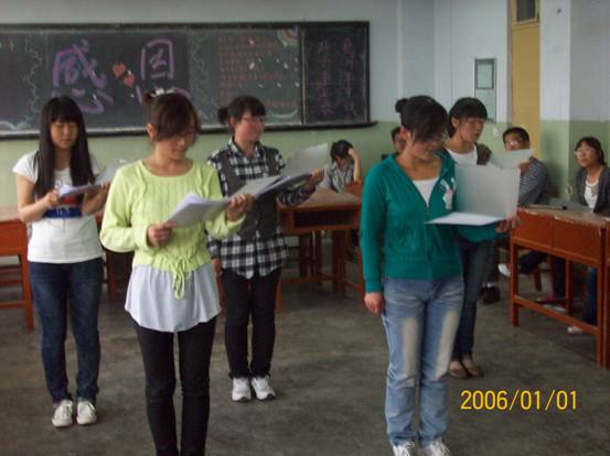 为丰富同学的业余文化生活,加强班级同学的感恩意识,展现当代大学生的精神风貌,2011年5月19日晚6点30分,由香港六合彩特码资料09级师范2班组织的以“感恩”为主题的小型班级晚会正式举行。辅导员老师王艳梅、学院团委书记曹洋、副书记阮超、院纪检部部长孙永刚参加了本次班会。