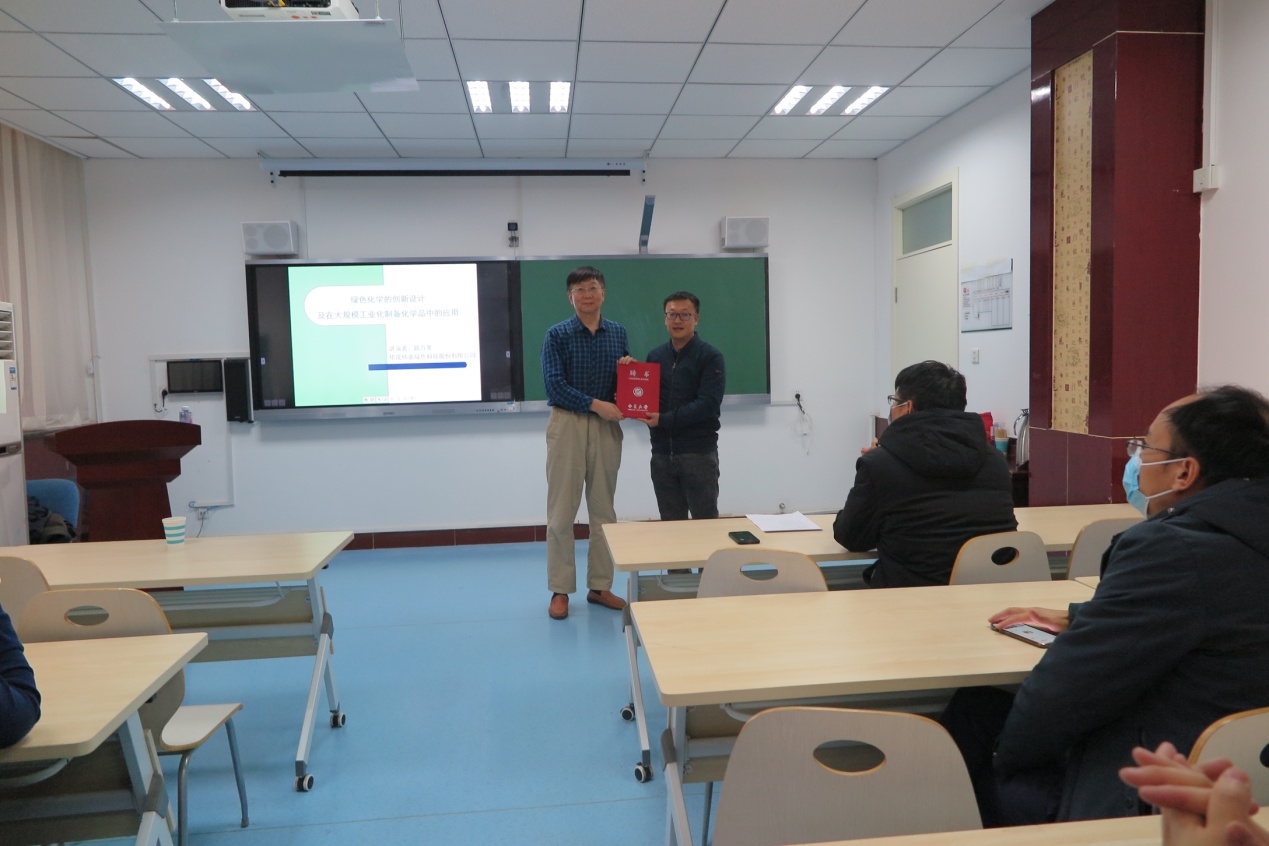 12月8日,路万里教授在知化楼303报告厅为香港六合彩特码资料师生作了题为《绿色化学创新设计以及在大规模工业化绿色制备化学品中的应用》的学术报告。报告由学院副院长刘翔宇主持,相关领域的科研人员和研究生聆听了报告。报告开始前,副院长刘翔宇为路万里教授颁发了宁夏大学客座教授聘书。