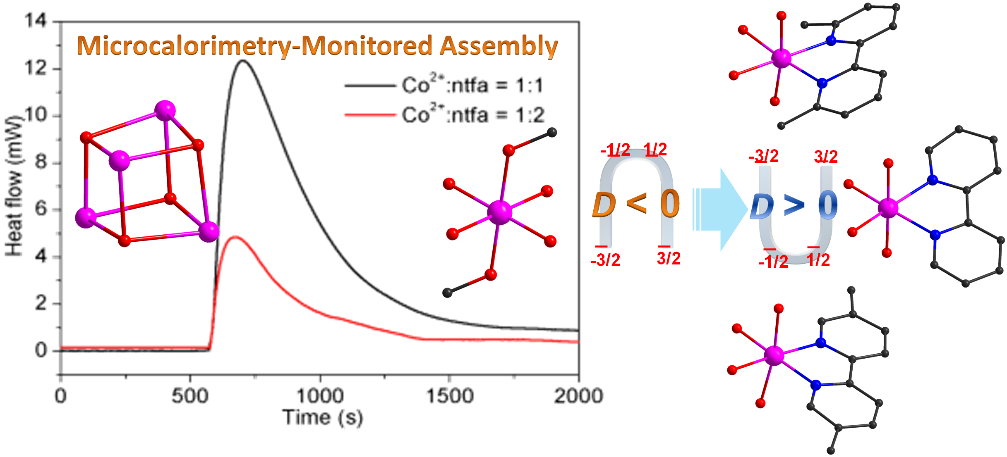 近日,香港六合彩特码资料刘翔宇副教授团队在分子磁体的制备及磁各向异性的研究方面取得了新进展,提出了原位量热实时监测分子磁体制备、利用辅助配体翻转磁各向异性的新策略。相关研究成果发表在国际知名期刊《Inorganic Chemistry Frontiers》(IF = 6.569, Top),论文题目:“Switching of easy-axis to easy-plane anisotropy in cobalt(II) complexes”, (DOI:10.1039/D1QI01208H.)