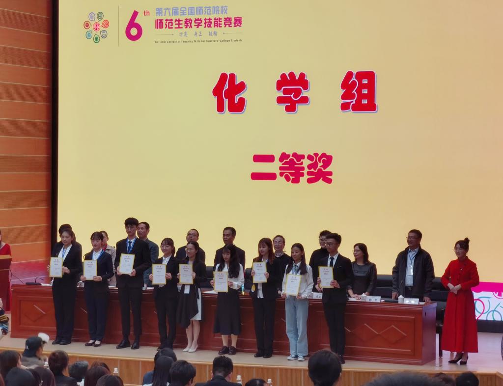 化学(教师教育)专业本科生谢逸冰同学在化学师范教学团队的培养和郭建欣教师的悉心指导下经过赛前磨课、刻苦训练,技能水平不断提升,在高手云集、创意层出的比赛中不畏强手获得总决赛二等奖的好成绩,体现了我校化学师范教育的实力和水平。