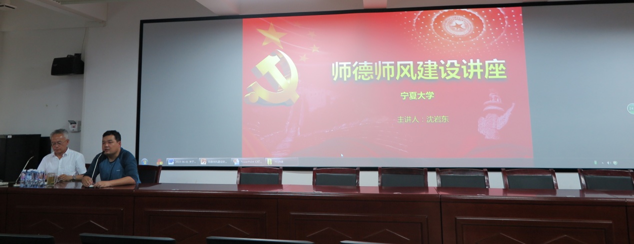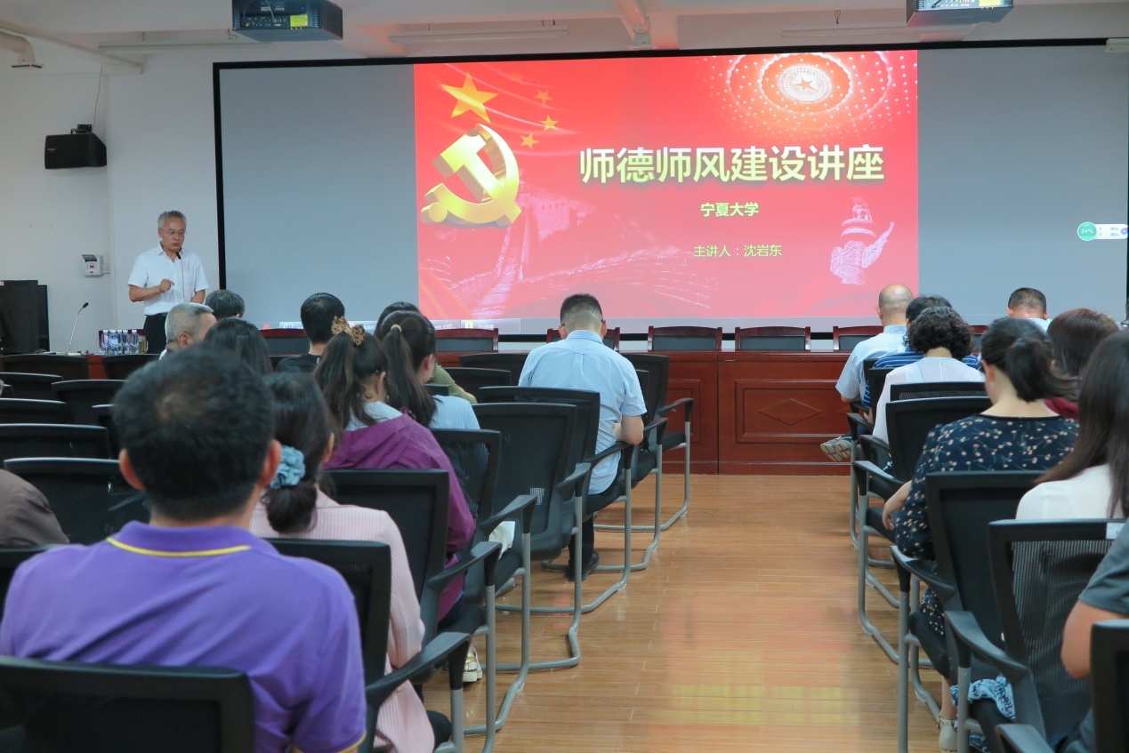 随后,沈岩东书记详细介绍了宁夏大学出台的师德失范行为处理办法,寄语广大教师提高思想认识,进一步加强师德修养,贯彻师德规范准则,不断践行宁夏大学“尚德、勤学、求是、创新”的校训精神。