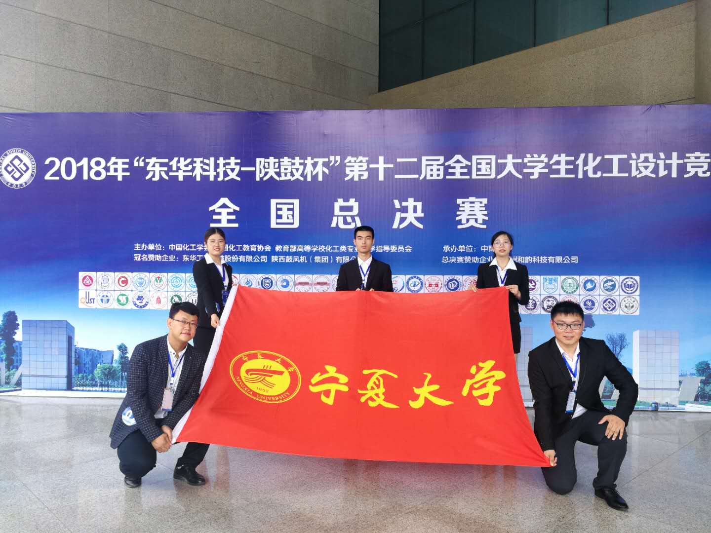 2015级化学工程与工艺专业本科生张聪、王佳、张琪、杨志华、孙琪组成的“戊问烯东”队经过校内评审、西北赛区决赛、全国总决赛,最终获得全国一等奖。