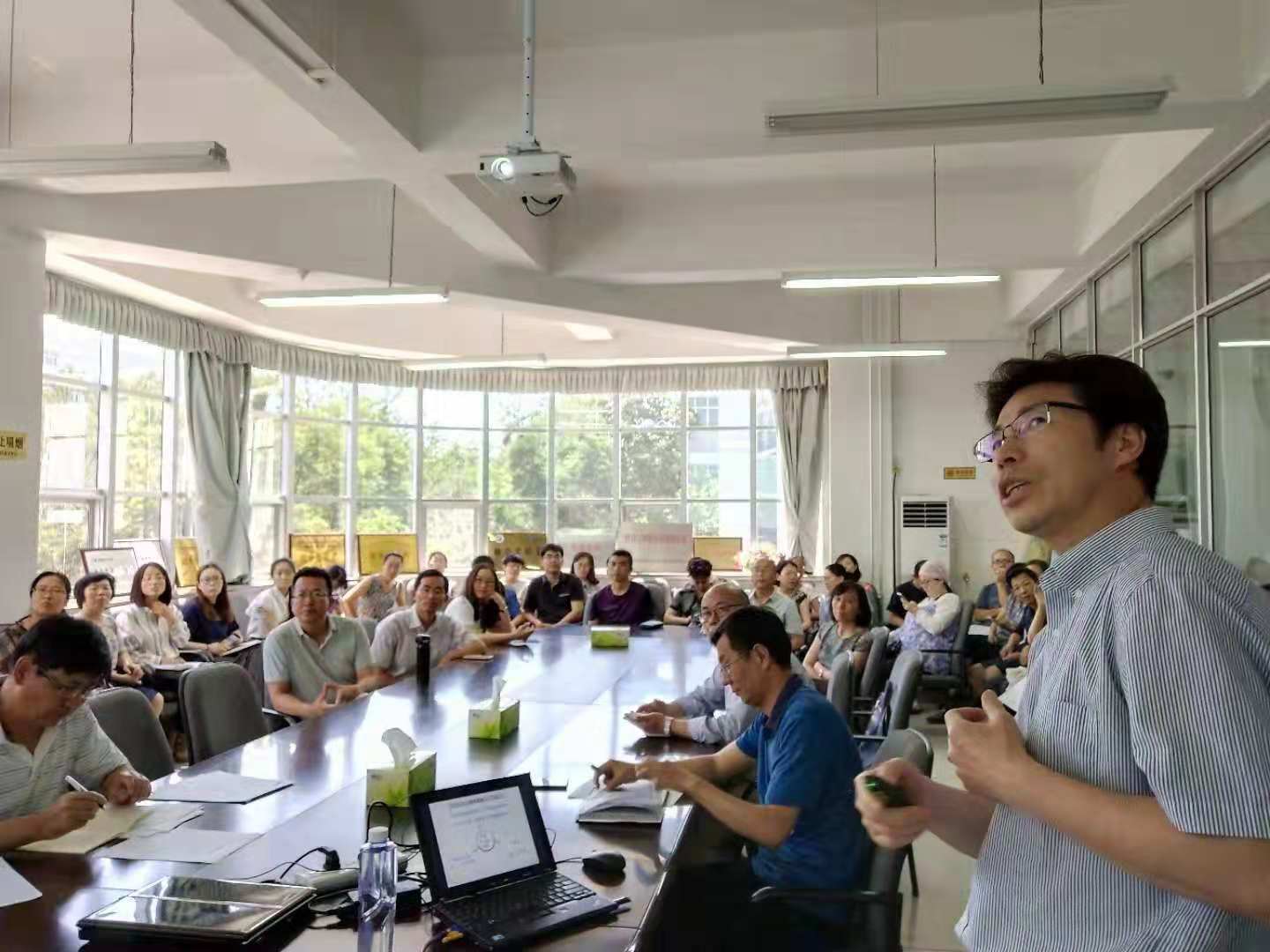 2018年7月11日,为促进宁夏大学一流学科的发展与“化学”硕士学位点的建设,学院邀请中国科学院化学所詹传郎教授来香港六合彩资料网站 进行学术交流。双方就学院“化学”学科的发展进行交流,詹教授对香港六合彩特码资料“化学”学位点的自评估工作提出了一些很好的建议。当天下午,詹教授还为学院全体研究生导师做了一场“有机光功能材料的合成化学——结构与性能调控中的关键问题研究”学术报告。