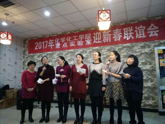 分工会和煤炭高效利用与绿色化工重点实验室工会小组,在文萃校区大益爱心茶室共同举办了“院室迎新春联谊会”。院室教职工及退休教师代表刘惠英、常璇和徐崇福教授等百余人欢聚一堂,展示了化学化工人的风采。联谊会由学院分工会主席蔡超主持。