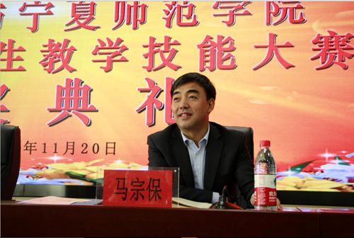 宁夏大学副校长马宗保在讲话中指出,教学技能大赛是师范生专业实践的重要平台,是参赛选手个人综合素质和技能水平的展示,是对两校各专业重视技能素质提高,推进人才培养的一次检验。他说:“当今的教师应该是一个设计者、指导者、帮助者以及与学生共同学习的伙伴。”马宗保希望在场的同学们勤奋学习,打牢基础,砥砺意志品质,练就过硬本领,脚踏实地、学以致用,一步一个脚印,把个人梦和职业梦融入国家梦和民族梦,用自己的双手开创成功之路和幸福生活,让自己的青春更加有意义。