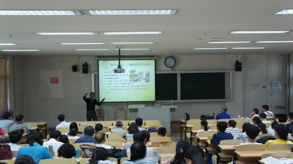 上一场由宁夏工商职业技术学院机电工程系的任云明副教授对实验室用电安全进行了报告。首先分析了北京理工大学的实验室爆炸、中科院(植物所)的气瓶爆炸、清华大学的液体飞溅等实验室发生危险事故的主要原因是不合理使用电器,强调了实验室用电安全的重要性。进而详细介绍了触电事故的基本知识,以及防触电的基本方法,比如绝缘、屏蔽等直接预防措施以及自漏、过流保护等预防措施。之后又对安全使用电器进行了系统讲解,要求对用电设备的电源线等进行仔细的安全检查,并且一个插排上不要使用多个电器,避免超负荷运行,同时也指出了常用设备的错误操作,如变压器接头未用绝缘胶带缠绕等。最后,又介绍了日常电器异常情况的处理办法以及安全用电习惯的养成。