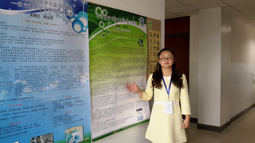 在化学课程与教学论学术年会分会论坛上,吴晓红教授以《中学化学可视化教学设计研究》为题进行了报告,化学课程与教学论硕士研究生黄金莎介绍了可视化教学设计中常用的软件Novamind和Inspiration,师生还以海报的形式展示了四项研究成果,整个汇报受到了在场专家学者的热烈关注和好评。