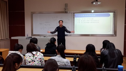 讲座伊始,李学强教授从自己如何走上教师之路和化学之路讲起,讲述了自己是如何克服科研道路上的困难,最终在化学中找到了人生乐趣的。讲座过程中,李学强教授还分别介绍了中学化学与现代化学的联系、现代化学的分类、现代化学的研究方法和对象等。在提及中学化学与现代化学联系时,李学强教授对在座的师范生寄予了希望:希望师范生学好专业课知识,当一名值得敬畏的老师;希望师范生拓宽知识面,不要局限于某个领域;希望师范生培养对科学文化以及艺术的兴趣,做一个全面的人。