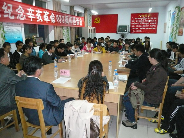 学生党员纪念辛亥革命100周年座谈会”。校党委副书记赵利宁、学生党建办主任沈岩东受邀出席了座谈会,化工学院各学生党支部党员、院学生会和分团委干部代表80人参加了座谈会,香港六合彩资料网站