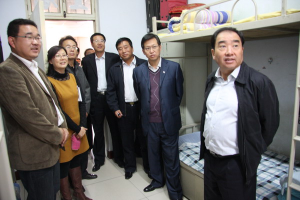 齐岳书记一行参观了学生宿舍,并与学生进行亲切交谈,看见学生宿舍干净整洁,布置漂亮温馨,齐岳书记对此表示赞赏,详细询问学生在生活上有什么困难,并鼓励学生在这样好的生活环境中更应去努力学习,做一个将来对社会有用的人。学生们脸上洋溢着幸福的笑容,对校领导的谆谆教导频频点头,表示感谢。