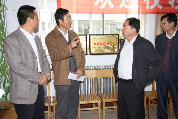 党委书记李嗣丞、院长刘万毅、副书记潘瑞的陪同下莅临12#楼检查指导公寓党建工作,并提出指导性意见。