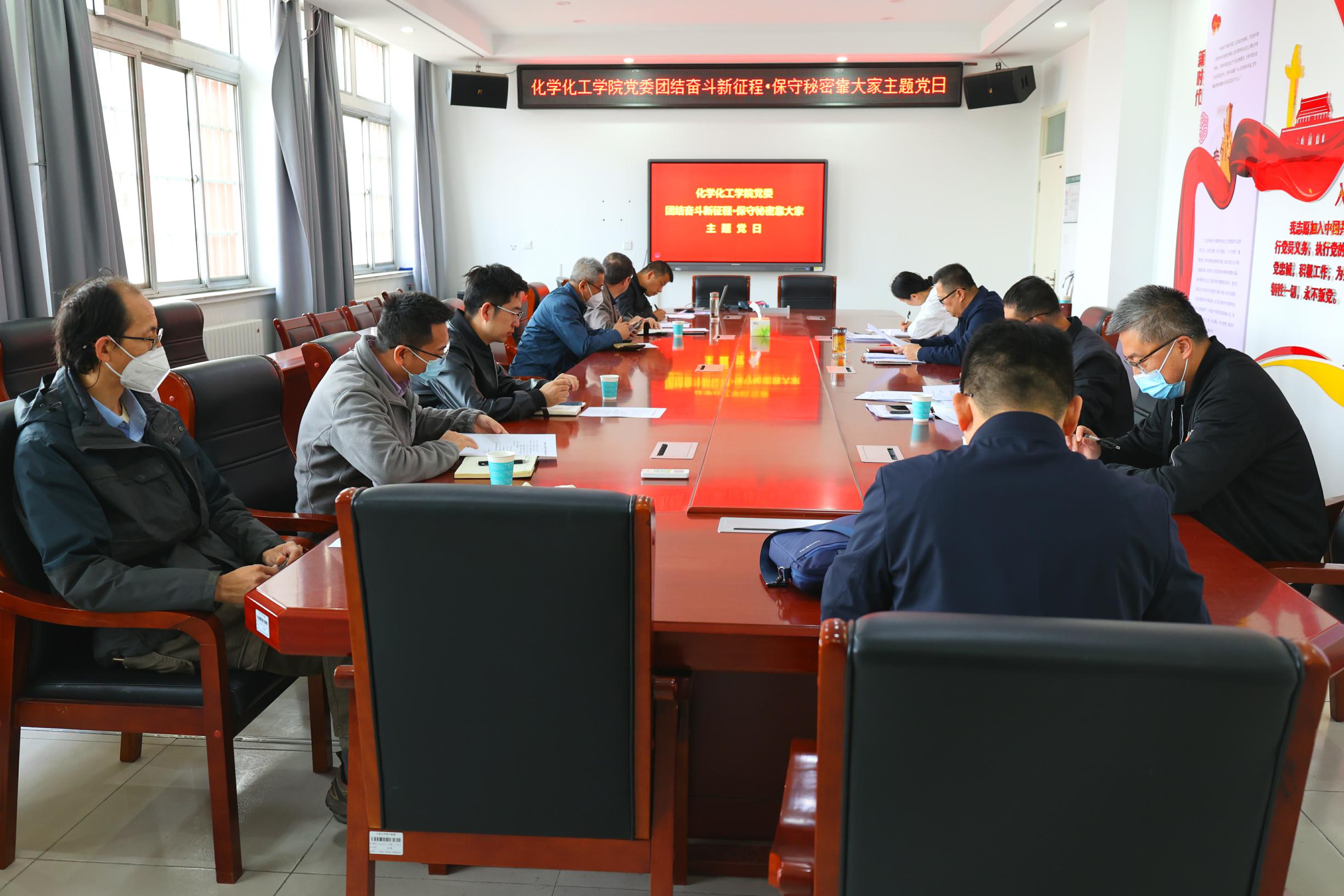党委在知化楼102会议室开展“团结奋斗新征程 保守秘密靠大家”保密宣传教育主题党日活动,学院领导班子成员、教工支部书记、系主任、“三办”主任等参加活动,活动由学院党委书记高继明主持。