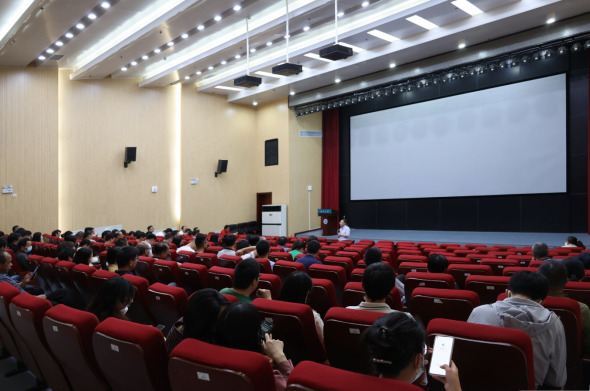 在贺兰山校区科技楼一楼报告厅召开全体教职工大会,罗正鸿院长主持会议。