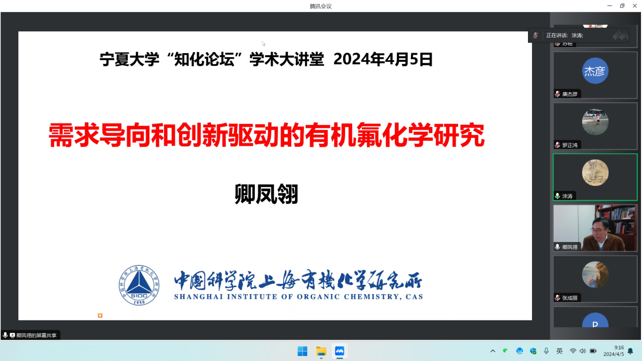 成功举办2024年“知化论坛”学术大讲堂系列报告活动。中科院上海有机所卿凤翎院士以“需求导向和创新驱动的有机氟化学研究”为题进行了讲座,涂涛教授主持本次报告会。