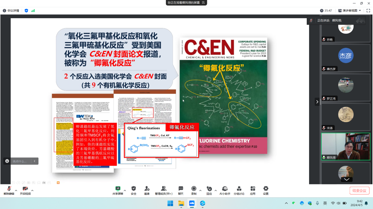 卿院士结合自己在科学研究探索方面的丰富经历,深入浅出地讲述了有机氟化学研究的意义和需要解决的重大关键科学难题;以丰富的科研成果为例,介绍了他在有机氟化学领域做出的一系列杰出成就。