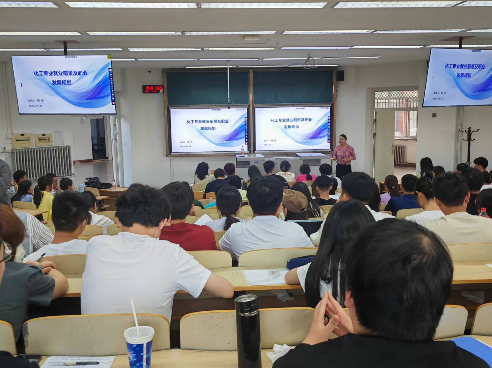 邀请国家能源集团宁夏煤业有限公司烯烃一分公司人力资源部陈丹副部长为香港六合彩特码资料化工、应化等专业本科生开展“化工专业就业前景和职业发展规划”讲座,共有大三、大四年级140余名学生参加,化工系主任李平教授主持了本次讲座活动。