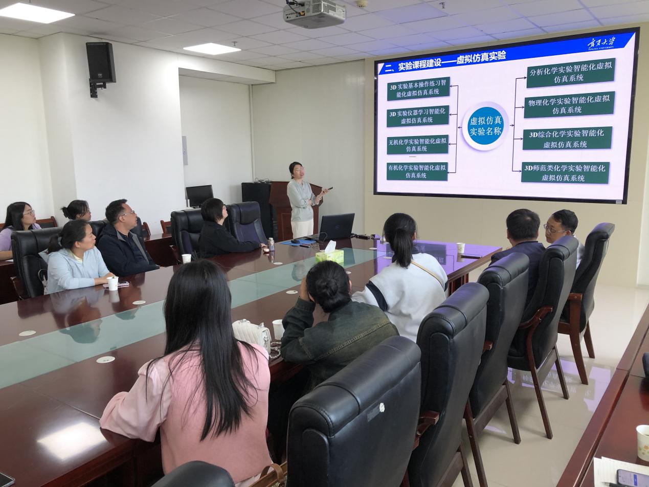 教师进行了座谈交流。李冰副院长介绍了化学、化工学科发展历程,人才培养及科学研究现状。示范中心陈小燕介绍了化学国家级实验教学示范中心(宁夏大学)、与中学相关的实验课程的建设情况,双方对大中学衔接与合作相关的问题进行了积极研讨,双方各抒己见,共同探讨了切实可行的解决方案。