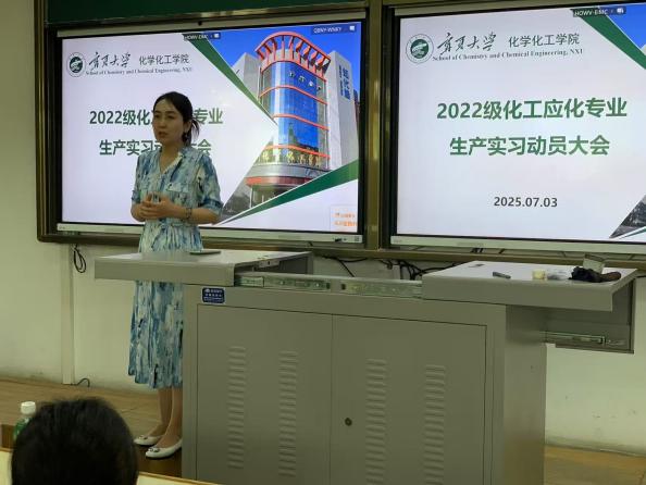 系主任李平老师在文萃一教131召开2022级化工、应化专业生产实习动员大会。实习指导教师及全体学生参加此次大会。