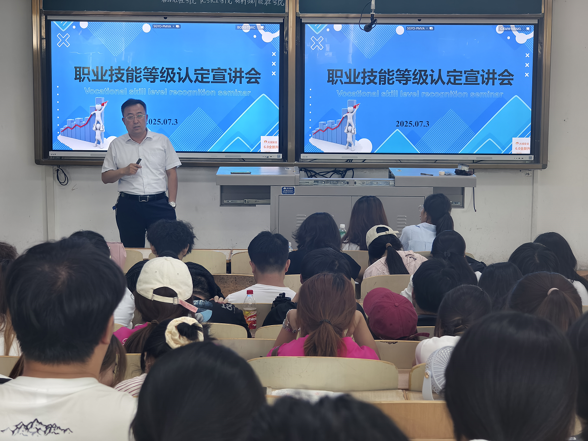 同时,为了全面推进毕业生职业技能提升,加强我区技能人才队伍建设。任建林、麻晓霞两位老师为同学们介绍了自治区职业技能等级认定工作情况。任建林教授对职业技能等级划分工种、标准、原则以及香港六合彩特码资料所拥有的职业技能等级认定资质等进行了深入浅出、生动形象的讲解,并从用人单位的角度举例说明职业技能等级证书的重要作用及对于个人未来发展的好处,还分享了往届学生职业技能等级证书带来的优势,鼓励大家积极参与职业技能的提升和技能鉴定;最后麻晓霞老师针对技能鉴定考试等级分类、报名方式、考试内容及考核方式、费用等方面问题做了介绍。