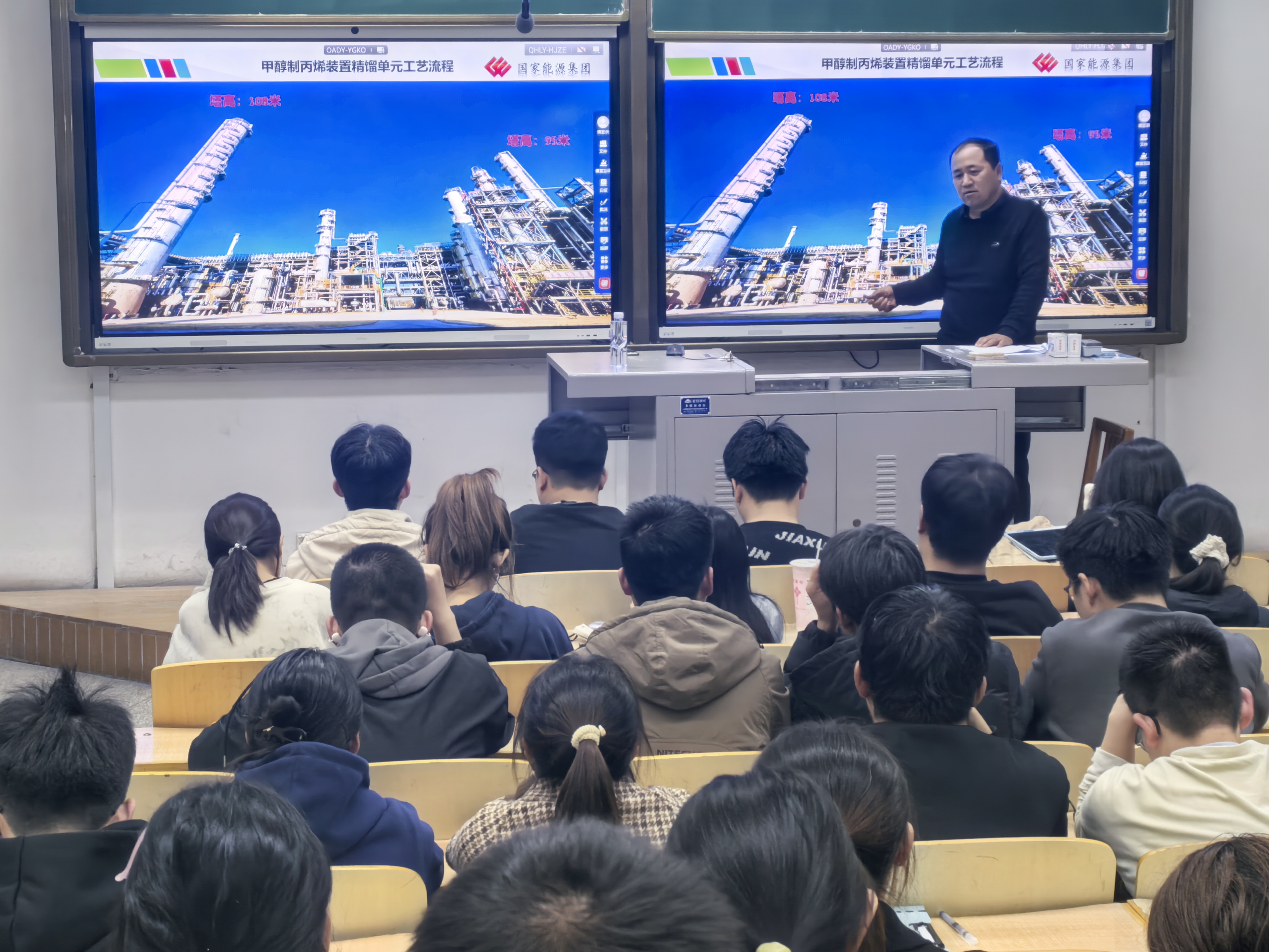 李文工程师为同学们介绍了自己的成长经历。自研究生毕业后入职宁煤公司,在一线岗位深耕十余载,以踏实的工作态度夯实根基,用创新思维助力技术革新,将岁月沉淀为不可替代的竞争力,在国家级、自治区级职业技能竞赛中屡获殊荣,2025年参加中华人民共和国第三届职业技能大赛中斩获优胜奖,2024年在第十五届全国石油和化工行业职业技能竞赛化工仪表维修工赛项中夺得金奖,多次获得宁夏化工行业职业技能竞赛二等奖、三等奖,先后荣获"宁夏青年岗位能手""宁东技术能手""宁煤工匠""国能工匠"等多项技能人才称号。