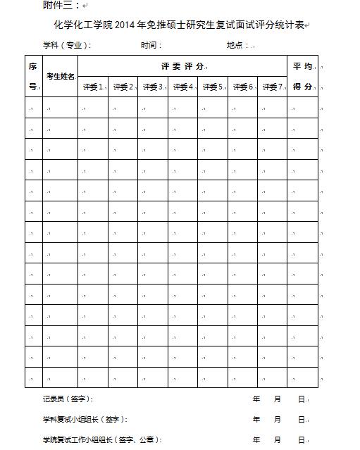 2014年免推硕士研究生复试面试评分统计表