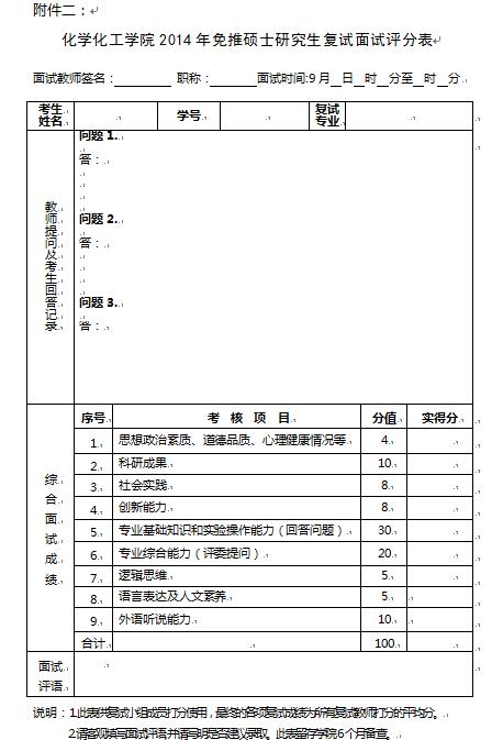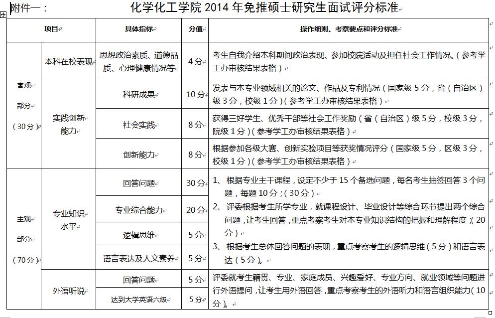 2014年免推硕士研究生面试评分标准