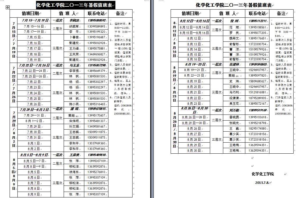 香港六合彩资料网站 二〇一三年暑假值班表
