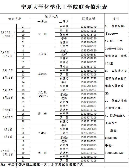 学院联合值班表(试行)